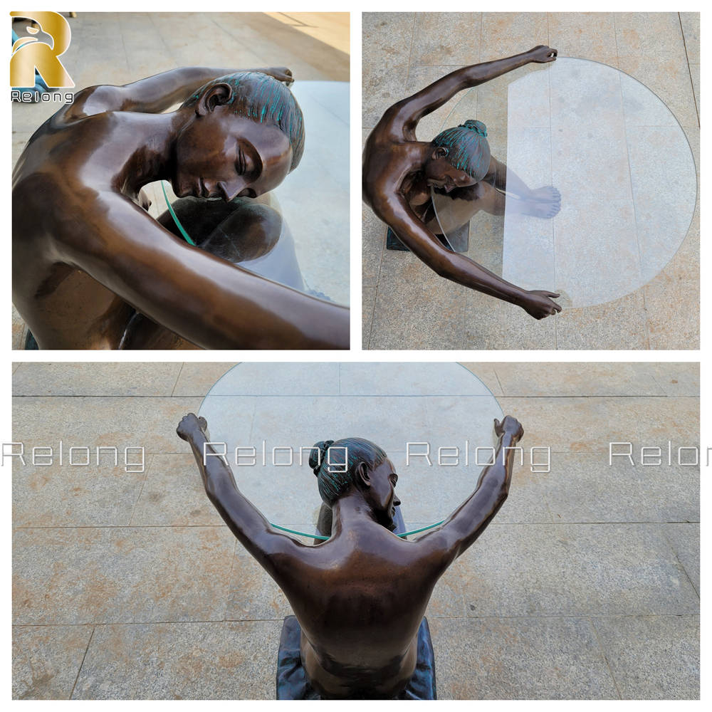 Bronze Naked Girl Sculpture Coffee Table RBFMS-010