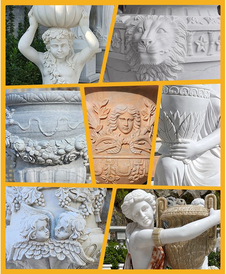 Hand Carved Natural Marble Planter Supplier- Choose from A-Grade pure, natural marble marble material, our planters stand out due to the exceptional quality of the marble used and exquisite carvings. Our outdoor marble planters are crafted with the utmost care and attention to detail, ensuring their exceptional quality and durability.